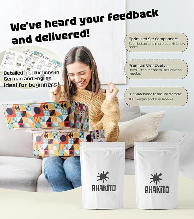 Ahakito Air Dry Clay for Adults, Pottery Clay DIY Kits for Adults Includes: Air Clay, Clay Sculpting Tools, Clay Paint, Brushes, Gloss Varnish for Air Dry Clay and Step-by-Step Comprehensive Guide