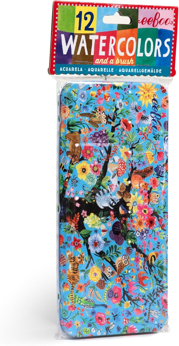 eeBoo: Tree of Life 12 Watercolors - Paint Set w Brush, Beautiful Design Tin Box, 12 Vibrant Colors, Kids Art Supplies, Ages 3+