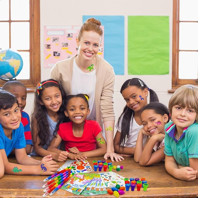 - Diverse Usage Scenarios:dinosaur school DIY activity set is suitable for gift exchange, family gatherings, children's birthday parties,dinosaur party, animals party,jungle party,classroom parties,gift bag filling, classroom prizes and daily use, classroom party set for kids to meet any of your usage needs