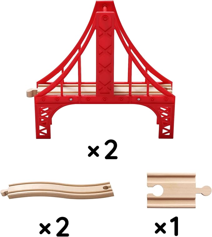 SainSmart Jr. Wooden Train Set Accessories, Double Suspension Bridge Set, Compatible with Brio, Thomas, Melissa and Doug