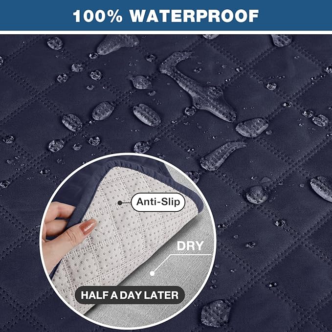 TAOCOCO Waterproof Recliner Couch Covers Sofa Slipcover for 3 Cushion Couch, Pet Sofa Cover for 3 Seat Recliner, Washable Reclining Sofa Cover Furniture Protector with Straps(3 Seater, Dark Blue)