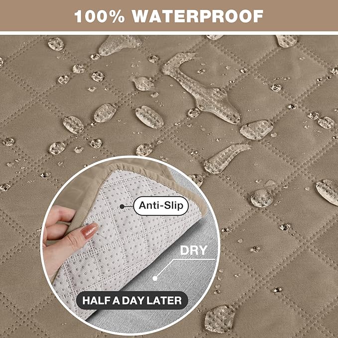 TAOCOCO Waterproof Recliner Couch Covers Sofa Slipcover for 3 Cushion Couch, Pet Sofa Cover for 3 Seat Recliner, Washable Reclining Sofa Cover Furniture Protector with Straps(3 Seater, Camel)