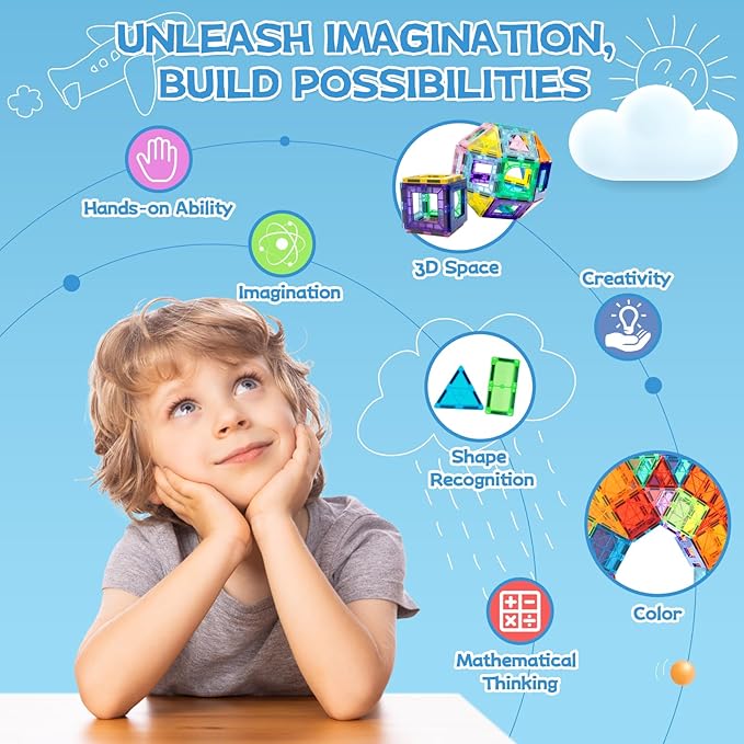 - Deluxe 130 PCS Magnet Tiles---EchoPlan Magnetic Blocks set offers 14 variety of shapes, perfect for DIY unique models. These vibrant, colorful magnetic tiles provide limitless building possibilities for both boys and toddlers. From 2D flat shapes to intricate 3D geometric structures, this sensory toy will ignite their imagination and creativity. As a STEM toy, it encourages exploration, design, and construction, offering endless opportunities for fun and learning.