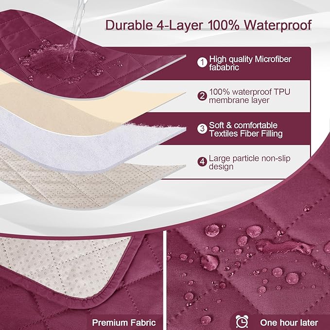 - 100% Waterproof & Comfortable: (This Recliner Couch Cover is Patented) KinCam recliner chair cover is made of high quality 100% waterproof polyester, which inner layer is filled with durable fabric, feel very cool to touch, comfortable and durable