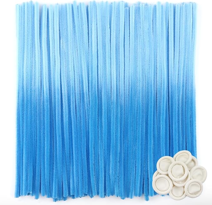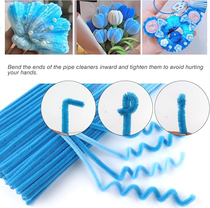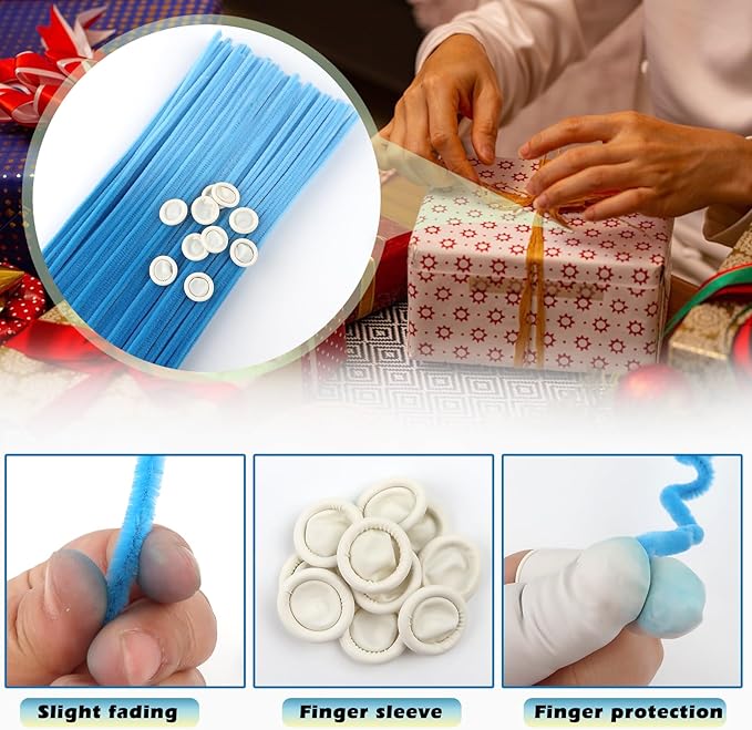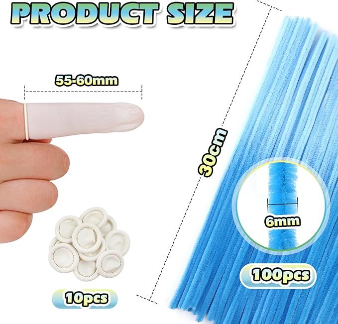 - Size: 100pcs gradient blue pipe cleaners 0.24 X12 inch (6 mm x300 mm); 10pcs white disposable latex finger covers 55-60 mm