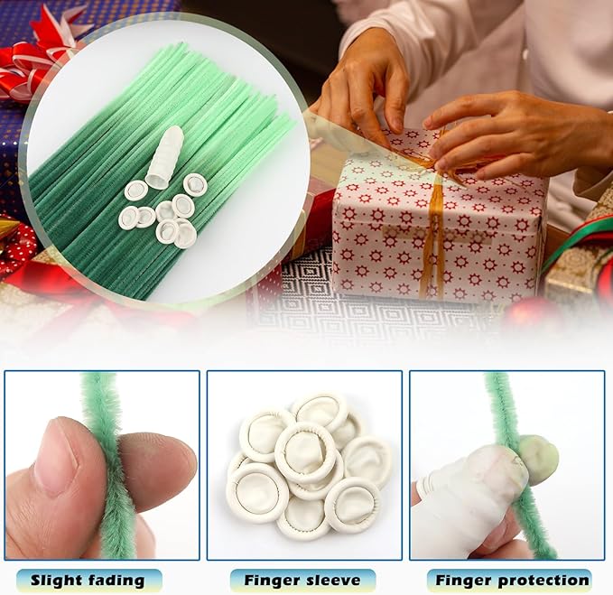 - Size: 100pcs gradient green pipe cleaners 0.24 X12 inch (6 mm x300 mm); 10pcs white disposable latex finger covers 55-60 mm