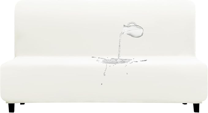 - 100% WATERPROOF STRETCHY FABRIC AND PERFECT FIT: Use high craftwork and technology, top fleece fabric is processed with waterproof treatment, and back coated with waterproof layer. Dual waterproof feature can guarantee 100% waterproof effect and leakproof. And this super stretchable couch slip cover will ensure your futon is completely covered. Our couch cover is designed and ready-made to fit a variety of futon sizes, stretches to 65" with seat width up to 80".