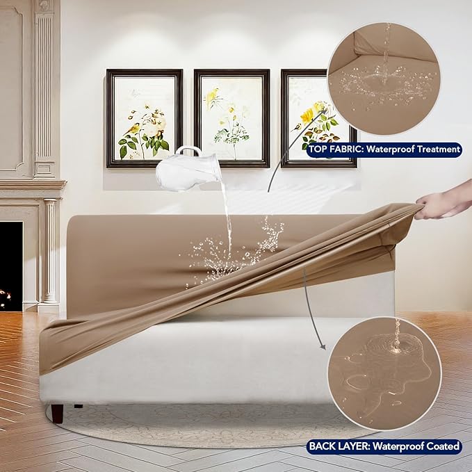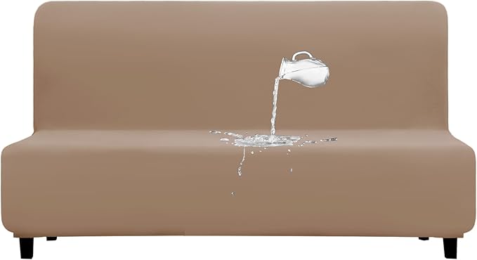 - 100% WATERPROOF STRETCHY FABRIC AND PERFECT FIT: Use high craftwork and technology, top fleece fabric is processed with waterproof treatment, and back coated with waterproof layer. Dual waterproof feature can guarantee 100% waterproof effect and leakproof. And this super stretchable couch slip cover will ensure your futon is completely covered. Our couch cover is designed and ready-made to fit a variety of futon sizes, stretches to 65" with seat width up to 80".