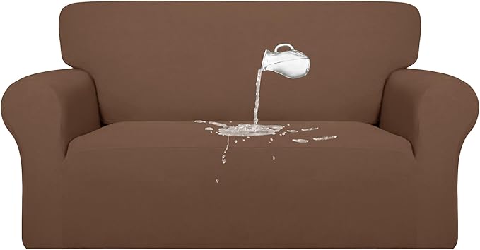PureFit 100% Dual Waterproof Couch Cover Slipcovers for Couches and Sofas - Stretch Non Slip Fleece Sofa Covers Washable, Leakproof Furniture Protector for Kids, Pets, Dog (Loveseat, Brown)