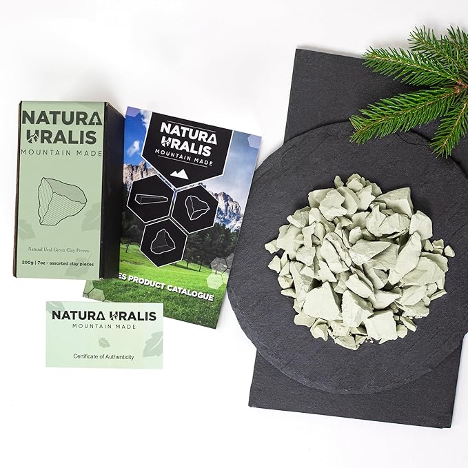 - TEXTURE & FORM | Our Ural green clay is the perfect balance of earthy, velvety and somewhat dusty. However, it’s also very smooth and almost creamy to the touch. It feels and looks almost malleable on the surface, and is quite soft in geological terms. It can be broken by hand with little effort. The earthy and gentle feel of the clay is very pleasant and has a primal quality. It has a mild and natural odour of nature and pristine purity.