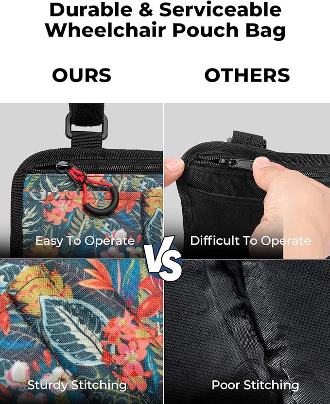 - 【Convenient and Easy to Attach】: You can attach and remove the wheelchair accessories bag easily with the sturdy adjustable straps