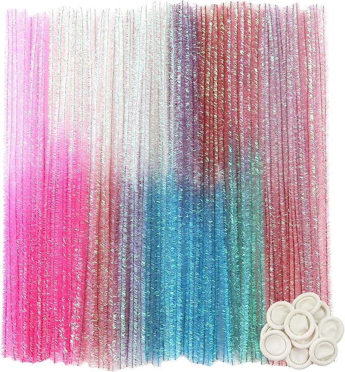TOAOB 100pcs Gradient Glitter Pipe Cleaners 10 Colors Chenille Stems for Crafts 12 Inch Fuzzy Sticks Craft Supplies for DIY Art Craft Projects Home Decorations
