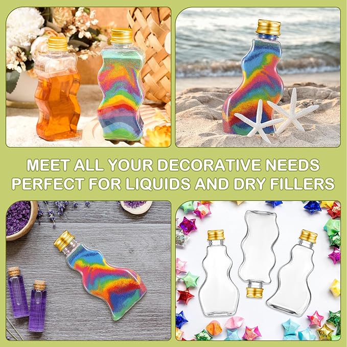 - Multiple Applications: sand art sand bottles can not only be applied as sand art bottles, but also crafts bottles, allowing you to fill them with acrylic rocks, sand, gems, dried flower petals, ribbons, candies, jewelry, small notes and so on