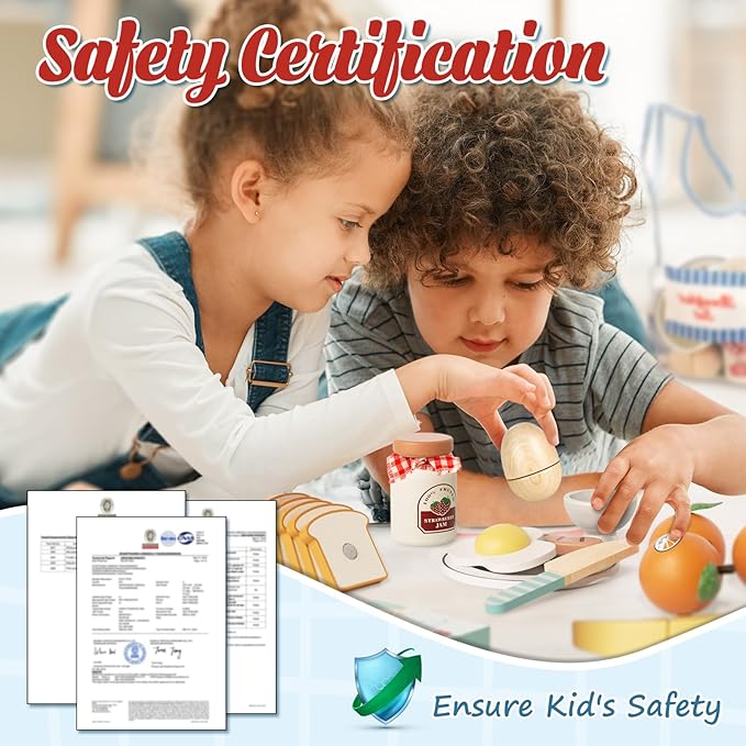 - SAFE WOODEN TOYS: We prioritize your child's safety, so our Pretend Food Playset is crafted from sturdy natural wood, non-toxic paints and polished smooth edges to ensure safe and long-lasting pretend play time