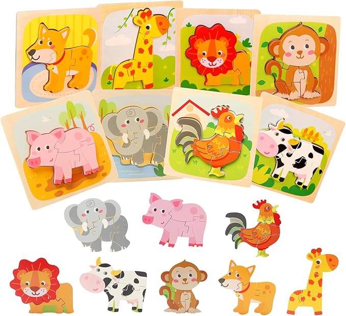 Wooden Puzzles for Toddlers 2-4, 8 Pack Animal Puzzles for 1-3 Years Boys Girls, Montessori Educational Toy for Ages 1-4, Baby Learning Toys Gifts with Storage
