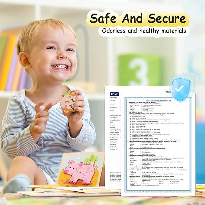 - SAFE PUZZLES for TODDLERS - Non-Toxic and Eco-friendly sturdy wood material meet USA toy standards. The wooden puzzles had passed PROFESSIONAL ASTM & CPSIA TEST