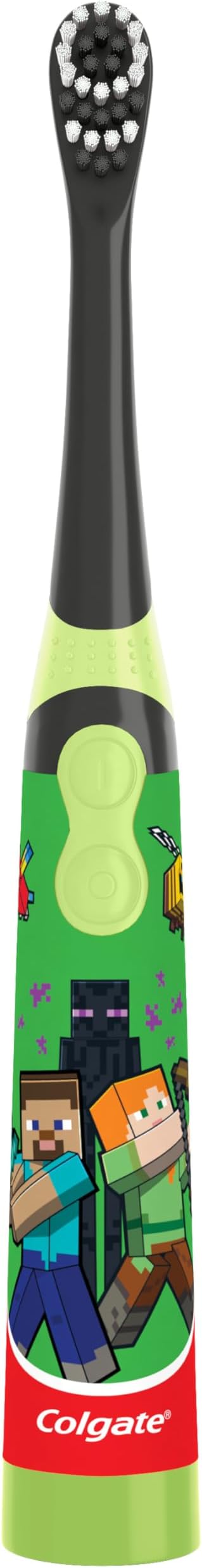 Colgate Kids Battery Powered Minecraft Toothbrush, Extra Soft Kids Battery Toothbrush with 1 AA Battery Included, Made for Ages 3 and Up, Features Easy On and Off Switch, Flat Lay Handle, 1 Count