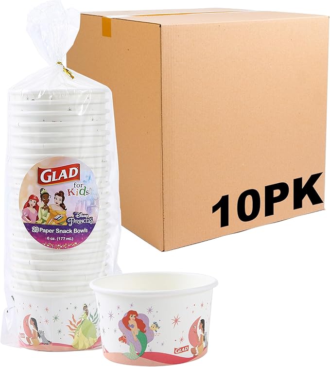 Glad for Kids Disney Princess “Magic is in All of US” 6 Oz Paper Snack Bowls | Disney Princess Paper Snack Bowls for Everyday Use, Kids Snack Bowls | Kid-Friendly, 32 Count - 10 Pack