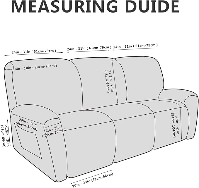 - GREAT SIZE FIT: Our leather-like recliner couch covers are designed for 3 cushion couch with a width of 72" to 93". Please read the size guide in the picture carefully and measure your recliner before purchasing. Machine washable and easy to care for, do not bleach or iron