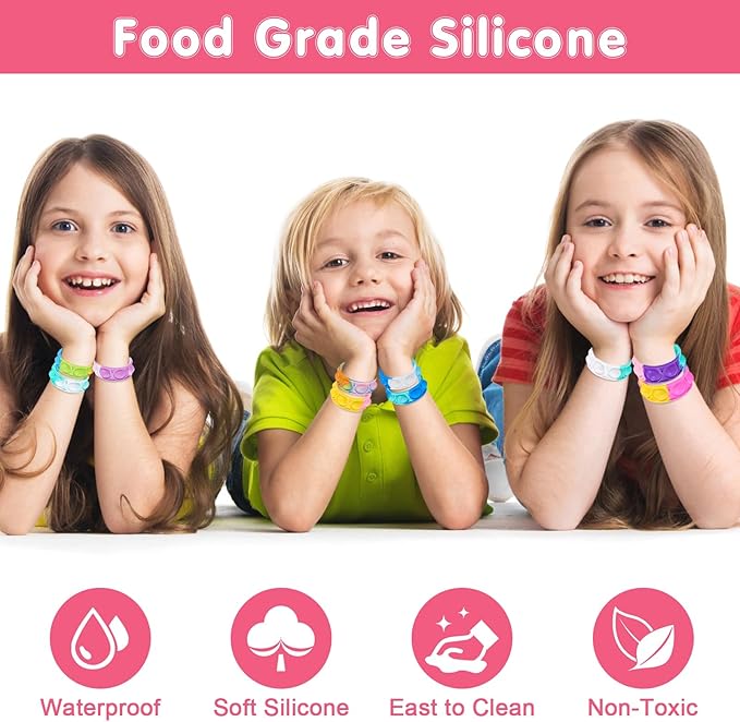- Superior Quality: Our pop bracelets are made of non-toxic silicone, CPC certified, safe as a pop fidget toy for kids 3 years+. These bear bracelets are sized 7.56inch/19.2cm and have an adjustable snap closure for kids of different ages. The 24 piece set is great for party supplies so every kid can have fun! Fidget toys for kids 8-12, fidget toys bulk, small fidget toys, kids fidget toys, mini fidget toys, easter pop fidget toys, adhd fidget toys, fidget toys pack.