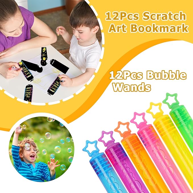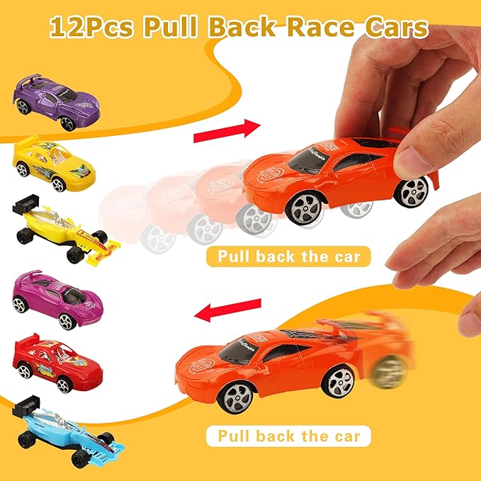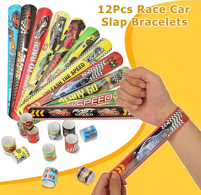 - Race Car Party Favors : Our party favors set includes 12 finger lights, 12 pull back cars, 12 scratch art bookmark set, 12 bubble wands, 12 keychains, 12 stickers, and 12 slap bracelets. These accessories are designed with vibrant race car-themed patterns and are made to withstand hours of play. They make for excellent party favors that kids will cherish.