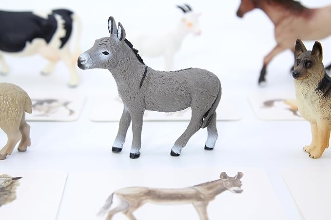 Montessori Language Materials Objects with Similar Cards 12pcs Mini Farm Animal Replicas with Matching Picture Cards Preschool Science Education Matching Game