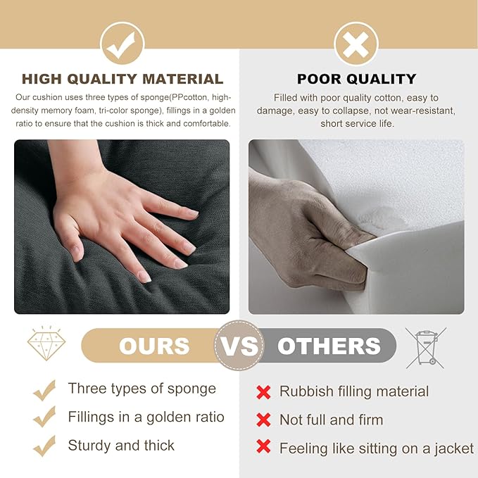 - 【CUSTOMIZATION SERVICES】ThinMay cushions offer customized service. We have both waterproof linen and waterproof oxford fabrics, 100+ colors, 3 types of non-slip bottoms, and any size can be customized. Warm tips: After releasing from the vacuum sealed package, please allow 2-48 hours for them to fluff up completely.
