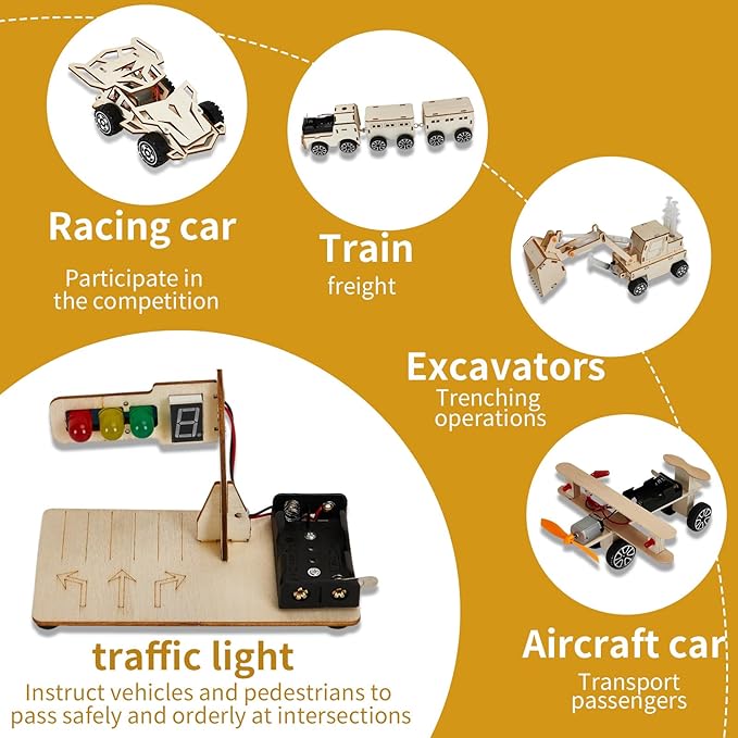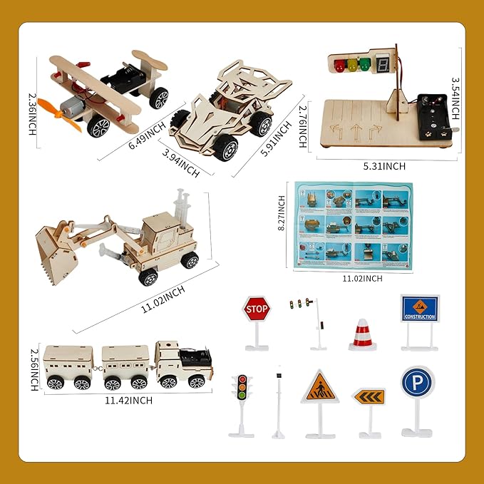 - Comprehensive STEM Learning Experience: Our innovative STEM wooden assembly toy offers a comprehensive learning experience that integrates science, technology, engineering, and math concepts in a fun and engaging way. Designed specifically for kids ages 8-12, this car model assembly kit includes a variety of vehicles such as race car, train, and helicopter, as well as accessories like traffic lights, excavator, traffic signs, and a traffic map for hands-on exploration and experimentation.