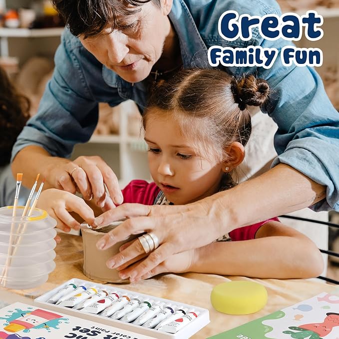 - 【Enriching Accessories】Our pottery kit comes equipped with a comprehensive set of tools: The clay kit includes 5 wooden clay sculpting tools, 3 brushes, and a round sponge, all housed in a reusable fabric pouch. A palette, folding brush washer, and silicone mat make coloring easy, while the beechwood rolling pin helps flatten clay effortlessly.