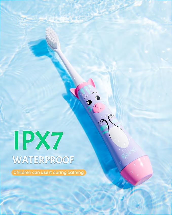 - ๐ฆท ๐ฆ๐ฎ๐ณ๐ฒ & ๐ช๐ฎ๐๐ฒ๐ฟ๐ฝ๐ฟ๐ผ๐ผ๐ณ ๐๐ฒ๐๐ถ๐ด๐ป - IPX7 waterproof rating and made from BPA-free materials, ensuring safety for children. The design includes protective features to prevent the toothbrush from extending too far into the mouth, reducing the risk of injury. Suitable for children aged 3 and up.