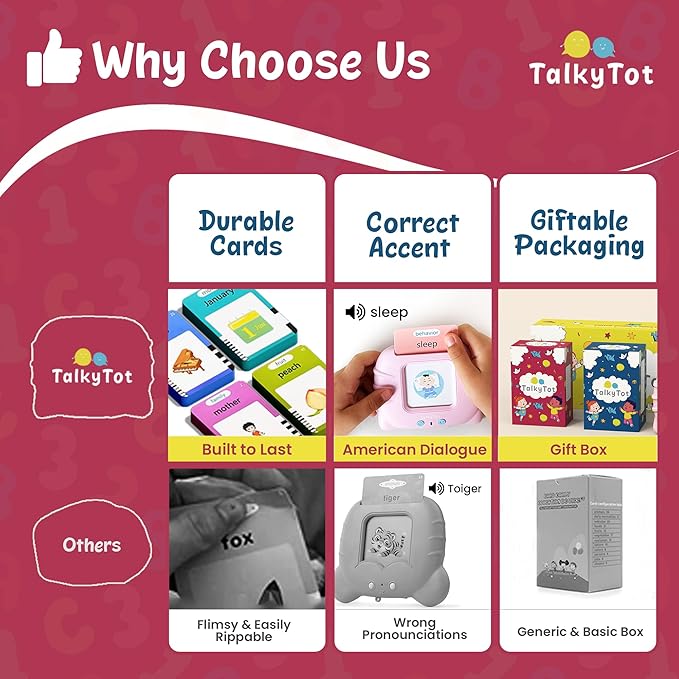 • 🎁 GIVE THE GIFT OF GROWTH - With a high quality giftable packaging box, elevate playtime and learning with the perfect gift for curious minds. Whether it's birthdays, holidays, or any special occasion, our speech learning toys are a beacon of joy and discovery.