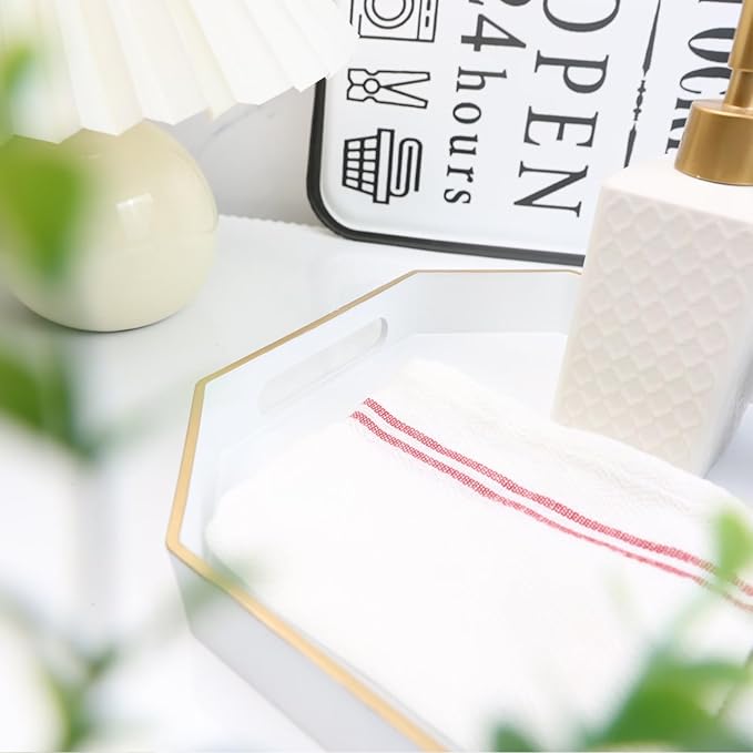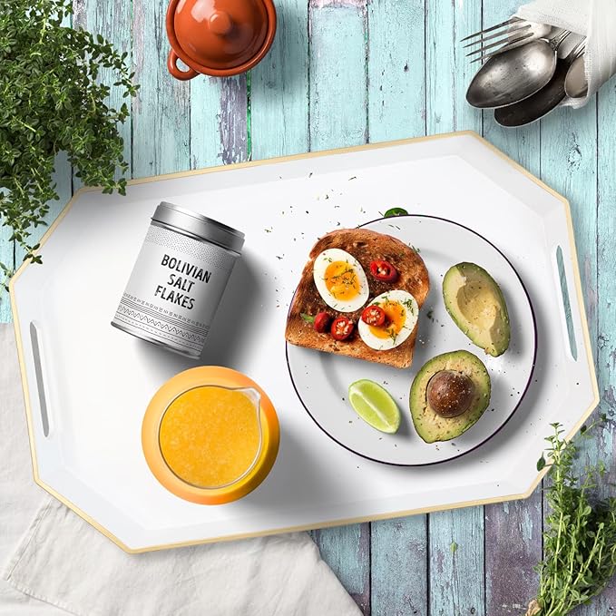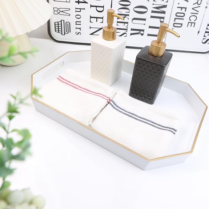Omuriko White Decorative Tray with Handles, Octagon Versatile Serving Tray for Coffee Table, Ottoman, Ideal for Serving, Displaying, Organizing