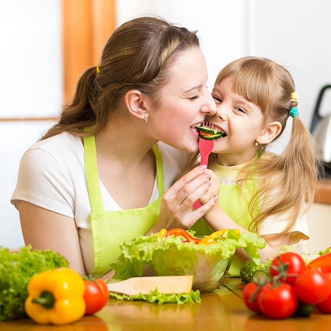 - VERSATILE SET: This 12 piece reusable plastic kids utensil set includes forks and spoons in a variety of colors perfect for children's lunches, snacks, camping, and for toddler's self feeding as well.