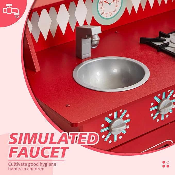 - PERFECT GIFT FOR KIDS: Young chefs are sure to love cooking up fun with our adorable Play Kitchen! Kids can have hours of play time fun in this wooden kitchen for birthdays, holidays. Our environmentally friendly kitchen playset is the perfect gift for kids.