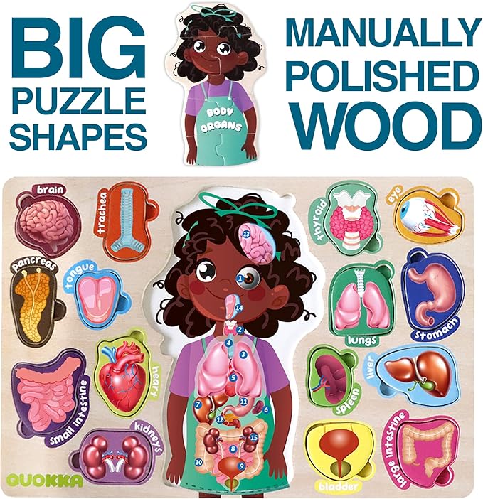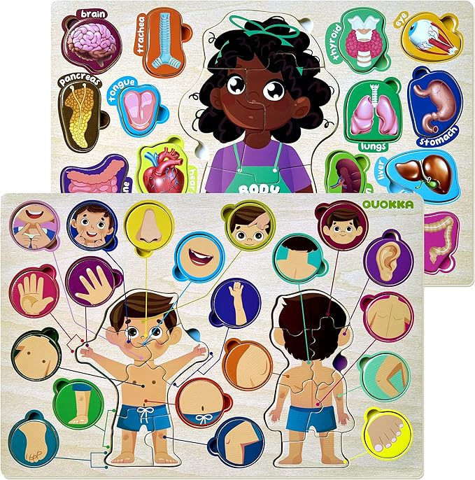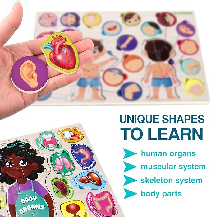 - ANATOMY LEARNING FOR KIDS: Human Body wooden puzzles boards are interesting for toddlers ages 18 months, kids ages 1-2; This educational set improves eye-hand coordination, logic, basic knowledge of our body