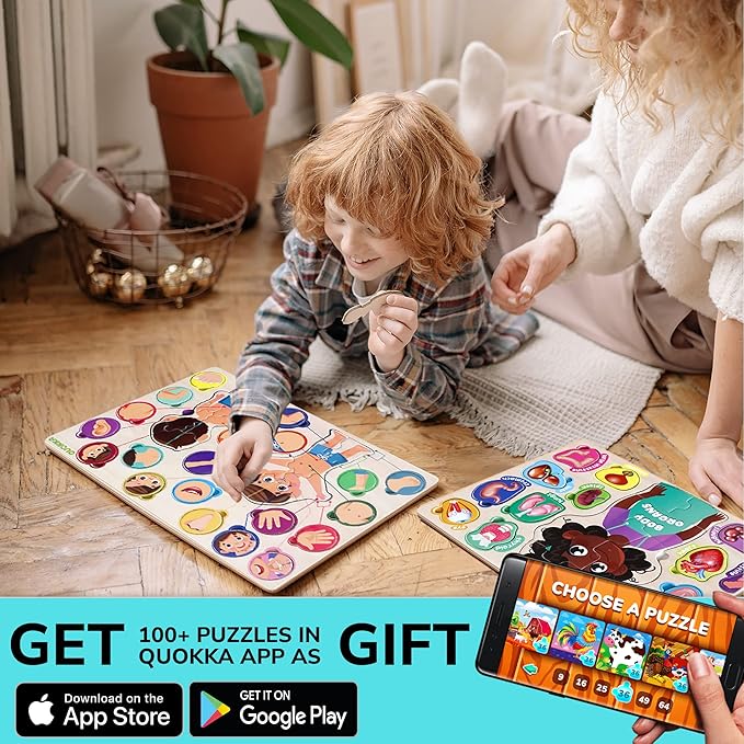 QUOKKA Wooden Puzzles for Kids Ages 18+ Months in a Bag – Montessori Toddlers Puzzles Ages 1-2 – Preschool Game to Learn Human Body Parts Anatomy Skeleton – Educational Toys for Boy & Girl