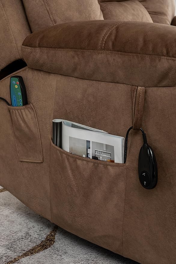 FANYE Electric Power Lift Chair for Elderly W/Massage and Heat, Infinite Positions 2 Remote Controllers Oversized Velvet Upholstered Recliner & Armchair W/Side Pockets & Hidden Cup Holders, Coffee V