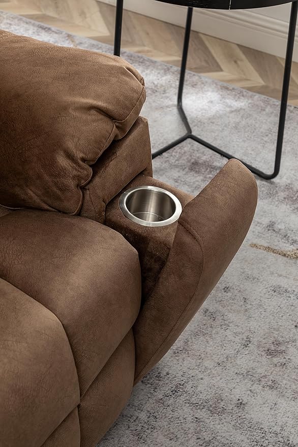 - Comfortable & Overstuffed: Whether you’re reading books or watching movies, this comfortable sofa chair can relieve the stress of a busy day. Treated fabric surface will bring a warm and soft tactile impression with a high back, thick cushion and high grade antiskid upholstery gives your head and neck a better rest, providing a very comfortable sitting feel and enhances safety.The side pocket and cup holders design provides a place for placing the remote control and other small objects.