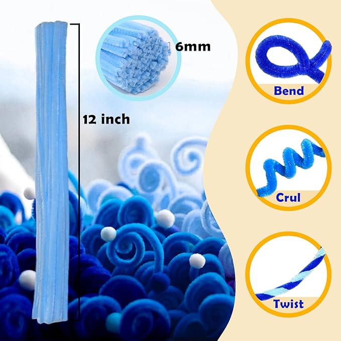 - You will get: A comprehensive 300-piece DIY pipe cleaners bulk set, featuring 3 vibrant blue colors with 100 pieces of each. They are a soft, creative material well-suited for blue-themed projects.
