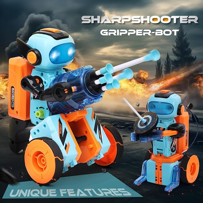- ๐๐๐ซ๐ฌ๐๐ญ๐ข๐ฅ๐ ๐๐๐ฌ๐ข๐ ๐ง: With 3-in-1 functionality, it transforms into a Sharpshooter, Soccer player, or Gripper-bot. Plus, its eye-catching LED lights add a futuristic flair, boosting its appeal to tech-savvy kids.