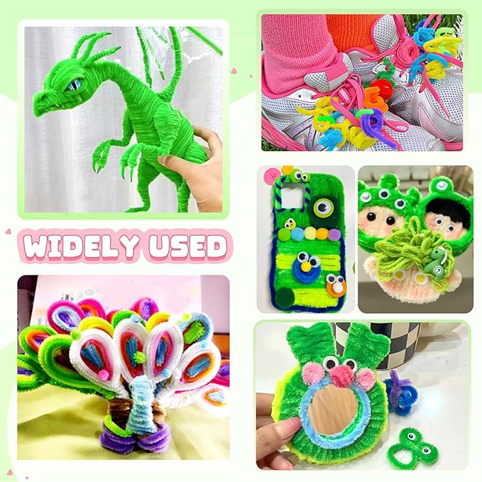 - Have Fun: Chenille Stems are perfect for DIY projects, opening your unlimited imagination and giving life to your craft projects. The making process can exercise your DIY ability. You can use these pipe cleaners as decorations for Halloween and Christmas