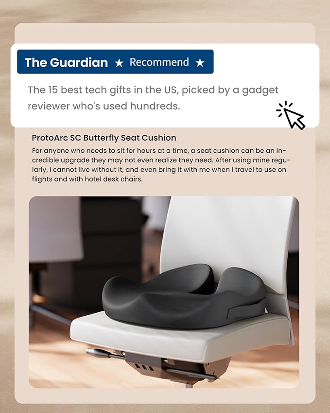 - Take Comfort Anywhere: ProtoArc seat cushion relieves lower back and hip discomfort, perfect for road trips, exercise, gaming. Standard size fits all body shapes, suitable for car seats, office chairs, wheelchairs, ensuring superior support and comfort anytime, anywhere