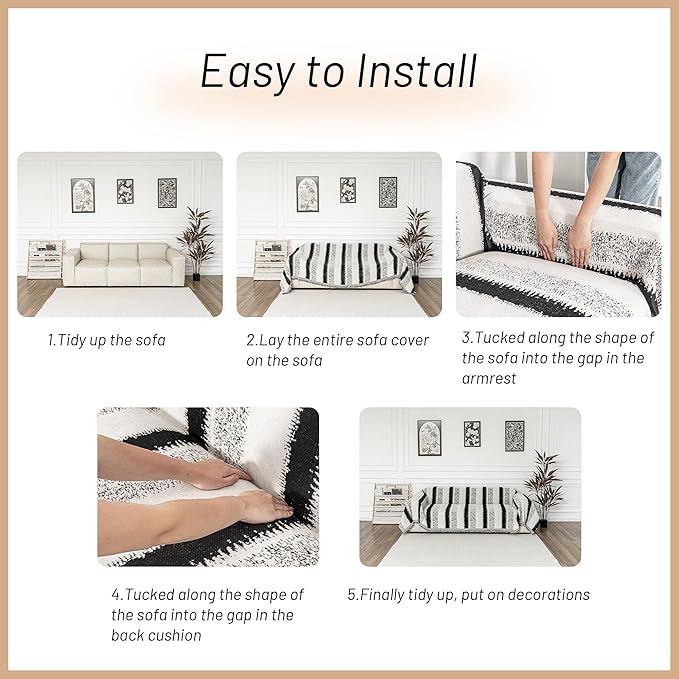 - Feature: Modern and classic style, lace or tassels edge designs could be selected according to your preference. No complicated installation is required. No limit on sofa covers, easier installation than stretch sofa slipcovers.