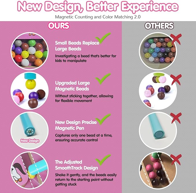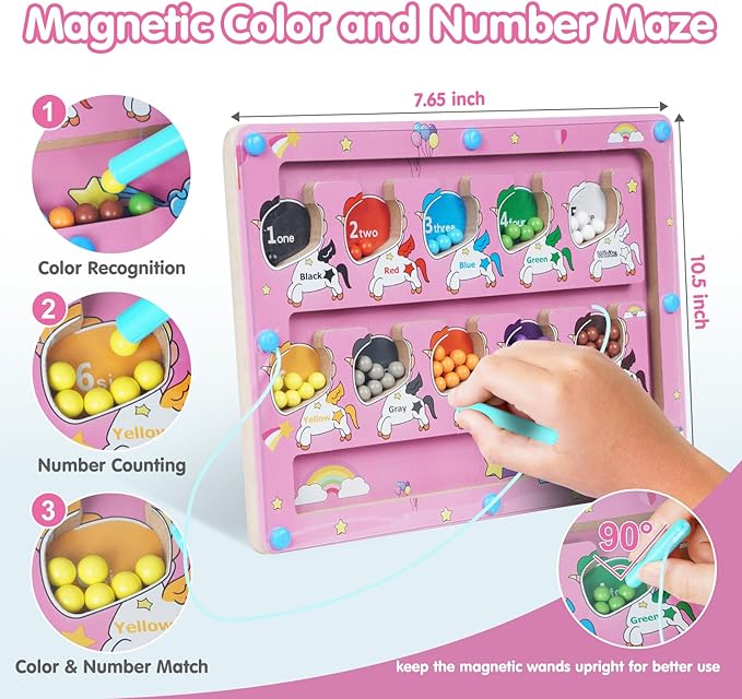 - MAGNE COLOR AND COUNTING MAZE EDUCATIONAL TOY: Features animals with numbers 1-10 and matching colors. Children use the magnetic pen to move beads to the correct color boxes, enhancing color and number recognition. Suitable for kids aged 3 and up, promoting hand-eye coordination and fine motor skills.