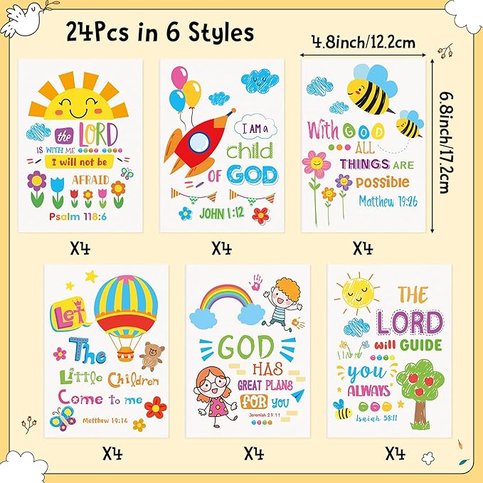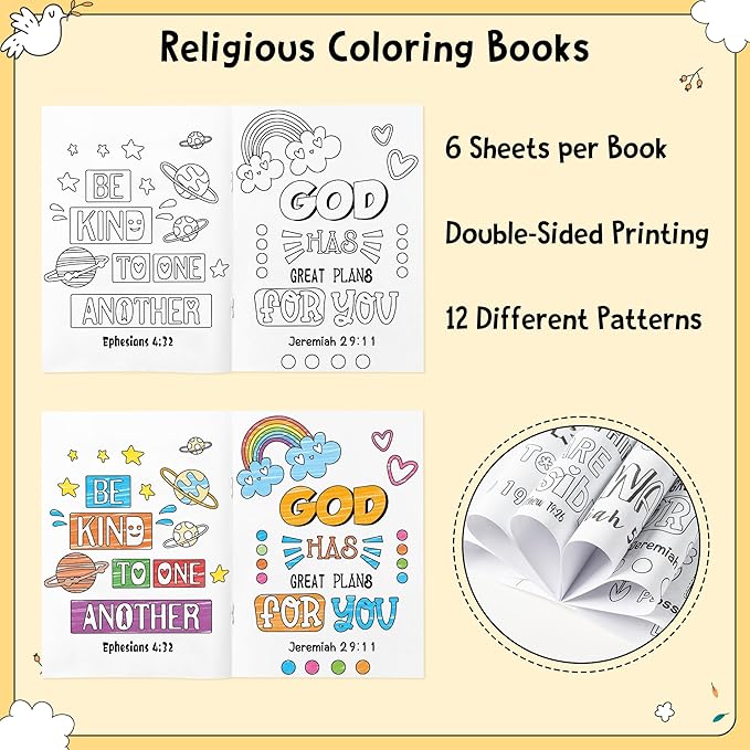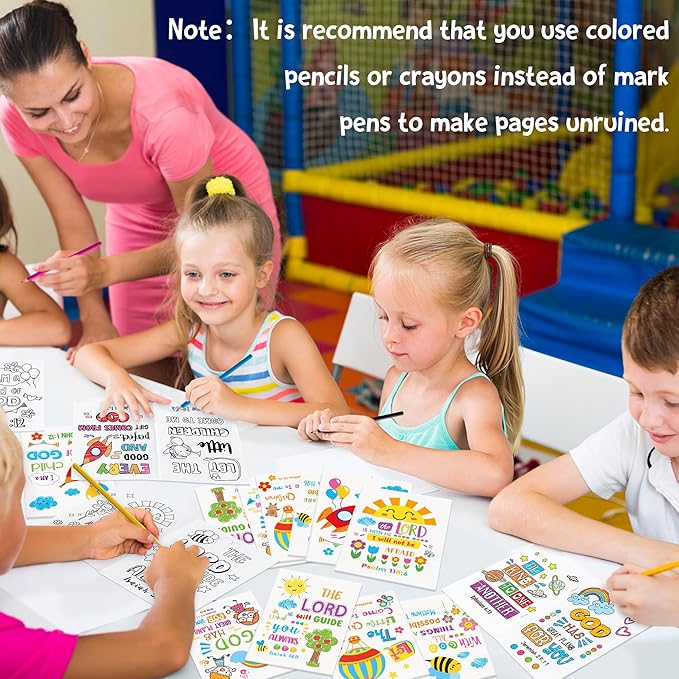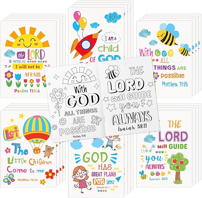 24Pcs Religious Coloring Books - Bible Verses DIY Color-in Pages Booklet Bulk Drawing Holiday Christian Theme Activity Supplies for Sunday School Classroom Rewards Artwork Gift for Kids