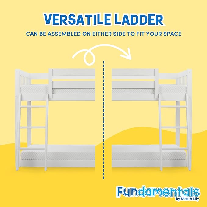Max & Lily Fundamental Twin Low Bunk Bed, Kids Solid Wood Modern Bed Frame with Strong Wooden Slats, Non-Toxic Finishes, High Weight Capacity, White