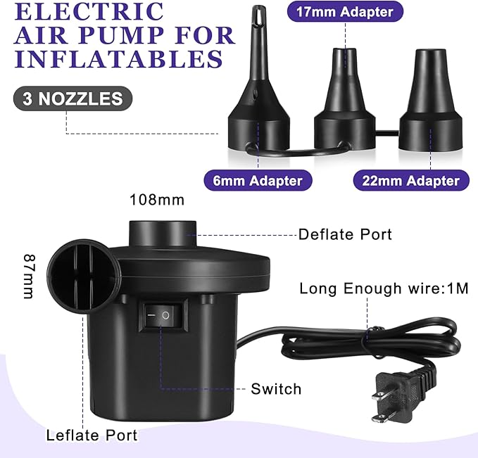 - Quick Electric Air Pump: the couch bean bag sofa package includes 1 quick electric air pump with 3 different nozzles, suitable for most inflatable products; Simply plug it in and start inflating or deflating; It operates fast ensuring you save much time and space; Enjoy its small size and lightweight features