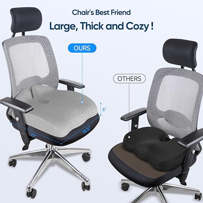 - Just wait until you discover: The seat cushion isn't just for office chairs, it can be placed wherever you need it. Whether you're working/ at home/ playing games/ traveling/ studying/ driving/ in truck/ on airplane/ or on bus, chair cushion can silently accompany you. It's for adults, seniors and who needs it