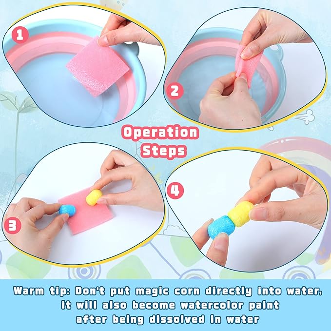 - Easy to Use: the magic foam corn ensures easy and fun crafts for kids, no matter their craft level; With simple assembly and easy to follow instructions, the production process is simple and easily accessible for adults and children, ensuring a rewarding experience filled with plenty of game value; Wet the sponge and put the corn on it so that the corn sticks firmly together without the need for glue