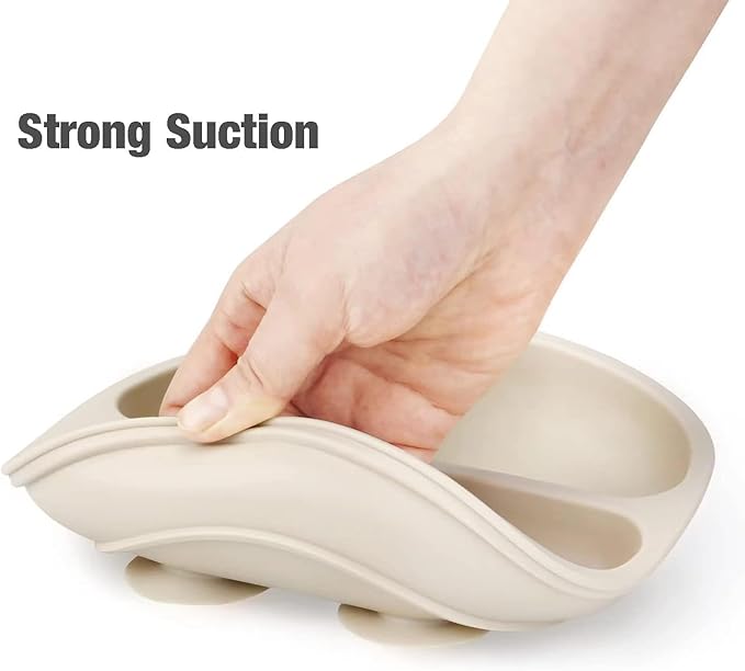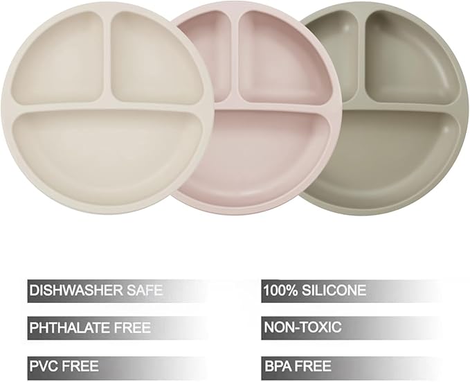 • BABY SUCTION PLATES: Give your little one more independence at mealtimes with their very own silicone plate featuring 3 divided sections. The non-slippery with sunction design will prevent plates from skidding. Use a bit of water under suction before using for best results.